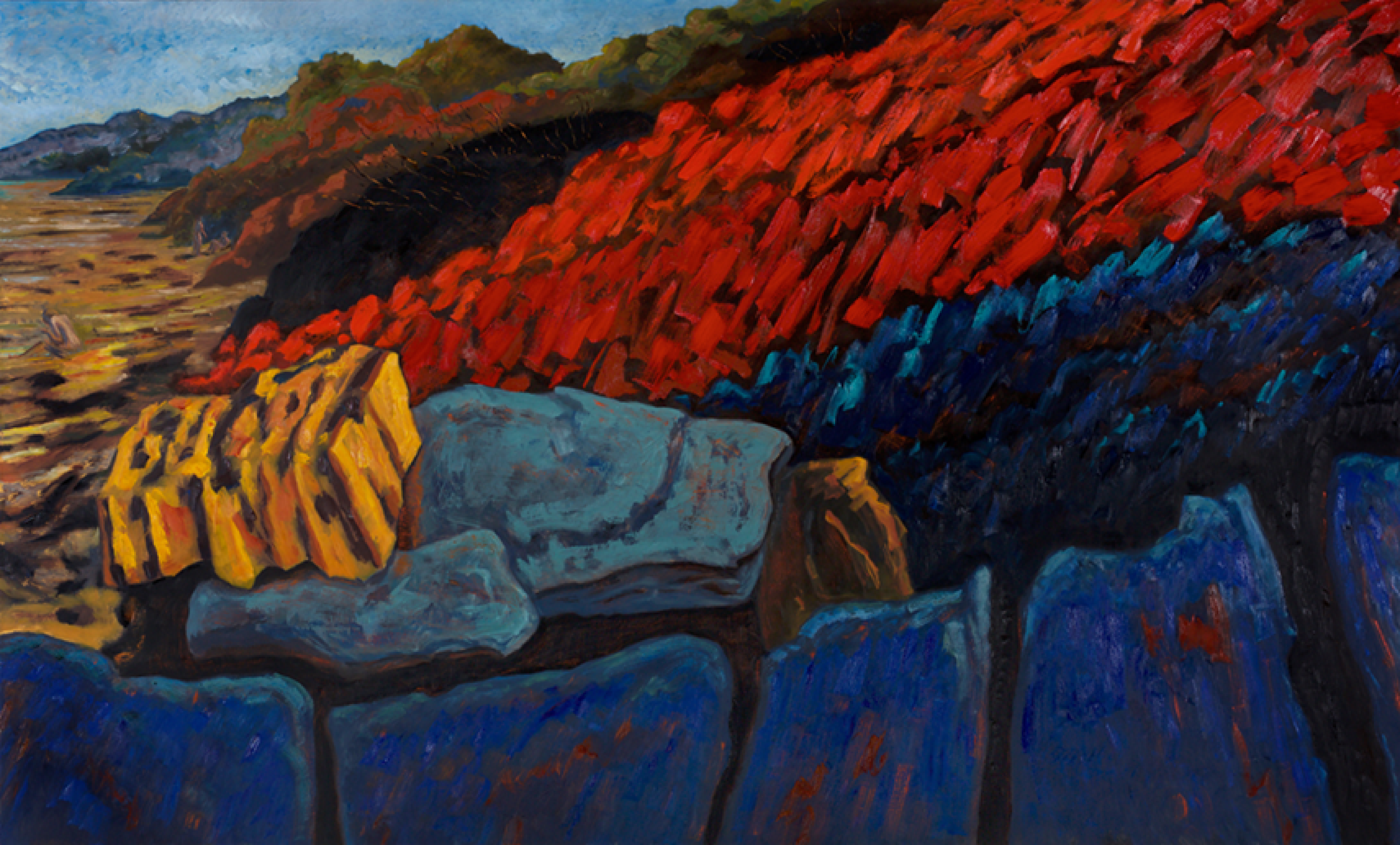 Du 23 octobre au 20 décembre 2025, la Galerie La Forest Divonne présente une exposition personnelle du peintre français Guy de Malherbe, qui sera marquée par la publication d’une importante monographie que lui consacrent les éditions Skira. Intitulée «Dans les Roches traversées», cette exposition rassemblera une trentaine de toiles récentes, des plus monumentales (Rouge flamboyant, couple et baigneuse, 2024, 170x280cm) aux plus intimes (Falaises, 2025, 30x30cm), de grands paysages, à des figures mythologiques telles que Lucrèce ou Ophélie. Cette exposition dressera un panorama de l’univers de l’artiste, tel qu’il se révèle dans la monographie qui accompagne l’exposition : 184 pages et plus d’une centaine de reproductions, qui parcourent la peinture de Guy de Malherbe des quinze dernières années, accompagnées de deux essais critiques, l’un de Cyrille Sciama, Directeur du Musée des Impressionnistes de Giverny, et l’autre de Pierre Wat, historien de l’art, critique et commissaire d’exposition, auteur récemment de la grande exposition Nicolas de Stael, au Musée d’Art Moderne de la ville de Paris. Dans sa préface, Olivier Kaeppelin, commissaire d’exposition et critique d’art, ancien directeur de la Fondation Maeght, écrit que « Regarder les œuvres de Guy de Malherbe, c’est pressentir un secret, qui se manifeste par détour.». L’exposition propose de traverser la roche des paysages de Malherbe pour partager cet univers révélé par la peinture, où l’émotion de la couleur et de la matière, se mêle à l’inconscient et aux rêves.